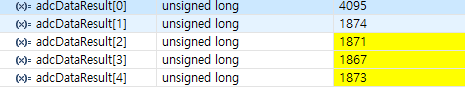 그 다음으로는 Interrupt를 사용해 ADC 변환 값을 읽고 Task에서는 변환 요청만 주었다.