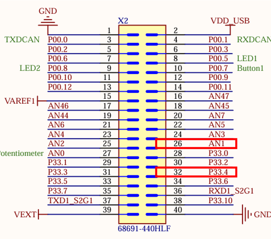 AN0~AN4 중 AN1 채널에 PWM 아웃풋 핀과 연결을 하였다.