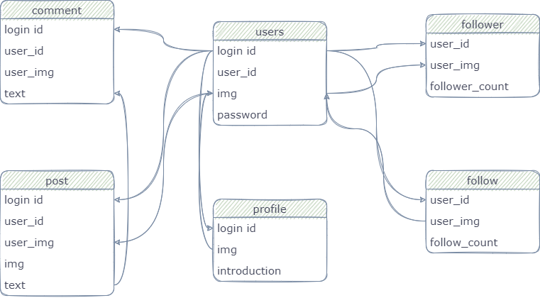 USER, PROFILE, LOGIN, COMMENT, POST, FOLLOW :