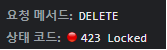 위와 같이 423 Locked란 상태 코드가 발생했습니다.