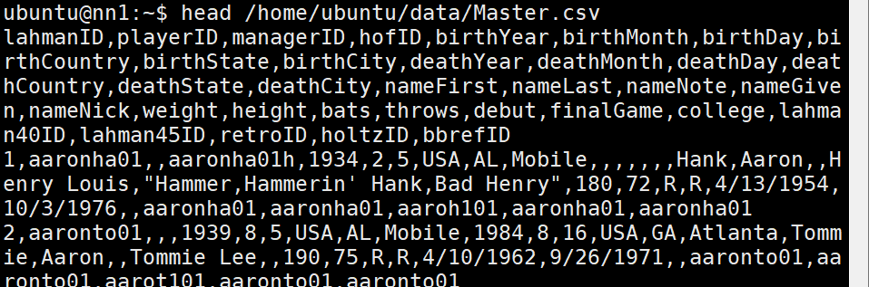 hdfs dfs -put /home/ubuntu/data/Master.csv /hive/baseball/input/Master.csv