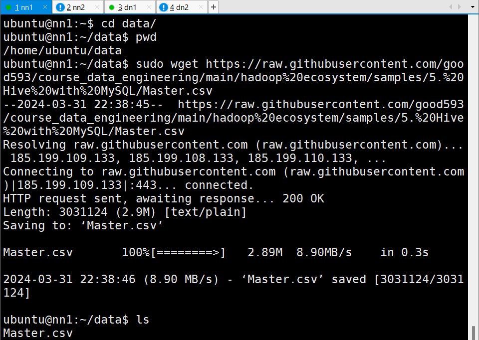 sudo wget https://raw.githubusercontent.com/good593/course_data_engineering/main/hadoop%20ecosystem/samples/5.%20Hive%20with%20MySQL/Master.csv