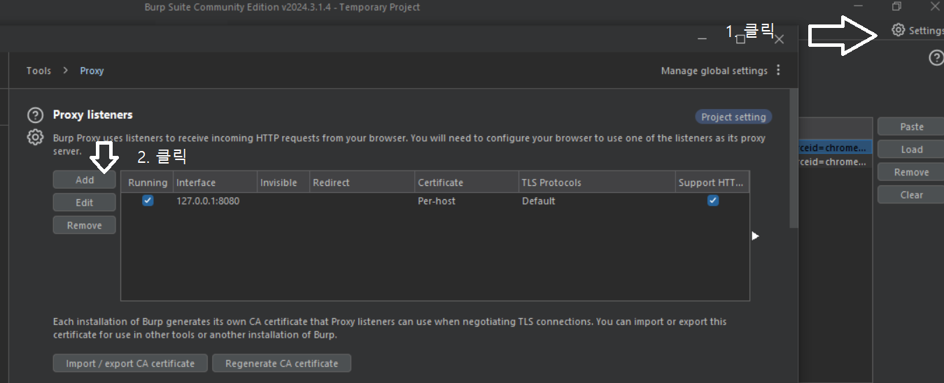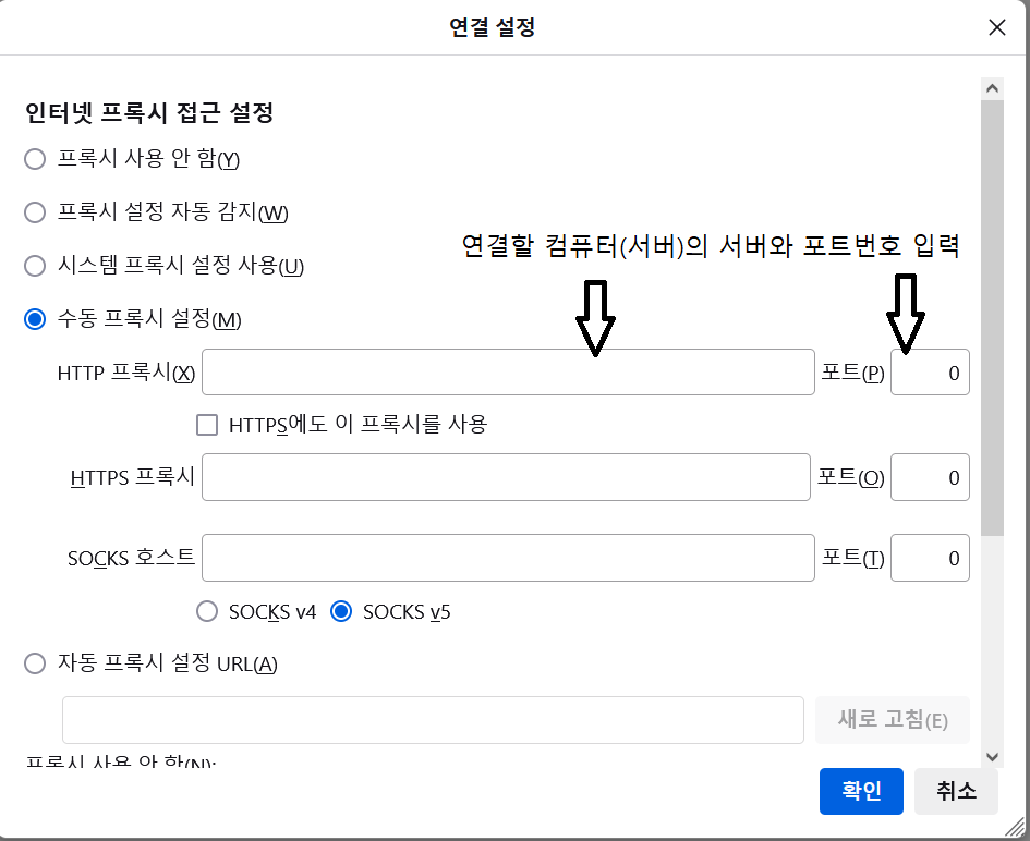 핸드폰의 경우 http 프록시에 들어가와 웹의 경우 설정에 들어가서 열린 포트번호과 같은 아이피 포트번호(서버쪽)를 설정한다.