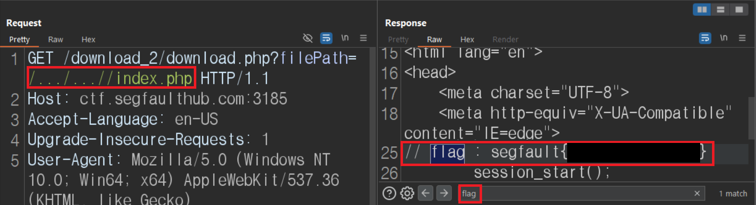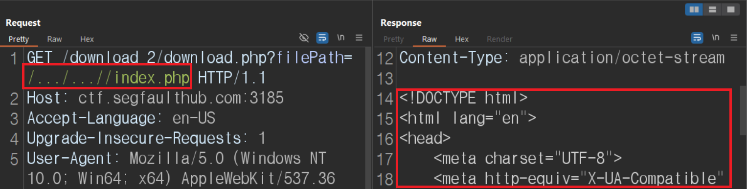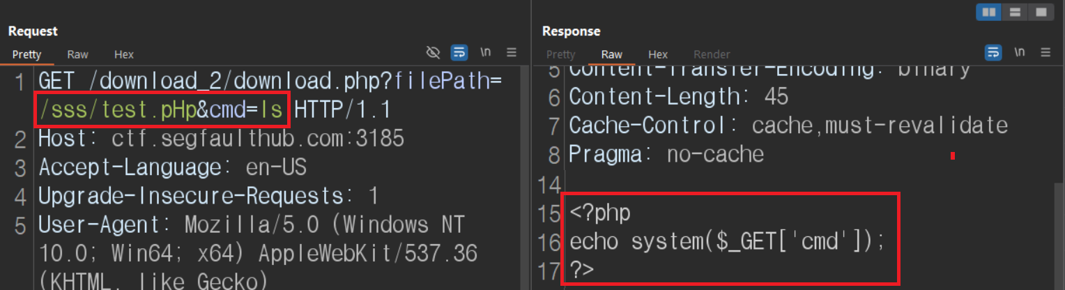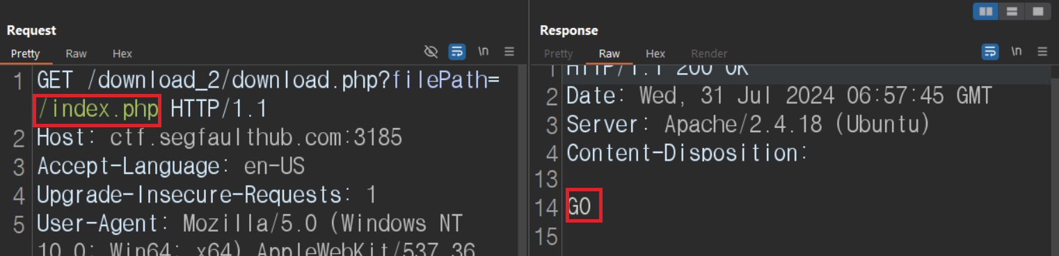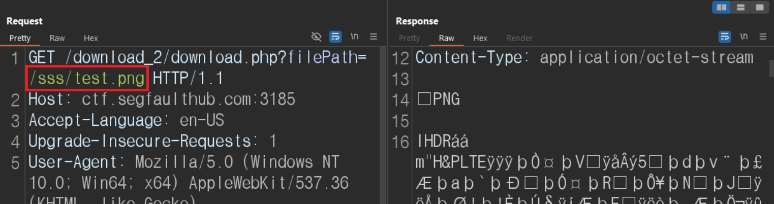 http://URL/download_2/download.php?filePath=/sss/test.png에서 dowload.php로 어떤데이터를 전달해주는 웹요청 발견