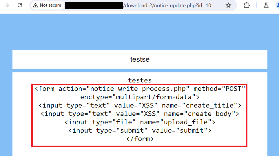 -> form태그 삽입할때 form태그자체 필터링제거 했기 때문에 가능