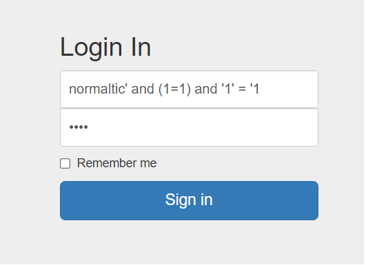 | normaltic' and ((select 'test')='test') and '1' = '1 | Result(True) |
