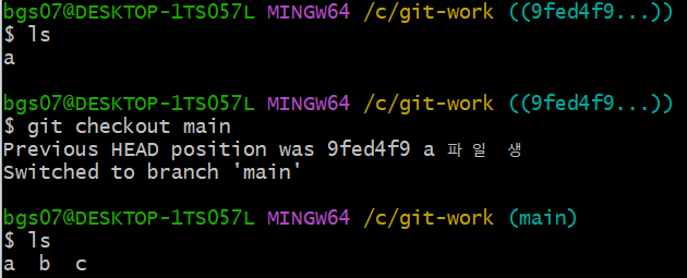 git checkout 최초커밋코드(앞4자리만 입력해도됨) // 과거로 돌아감