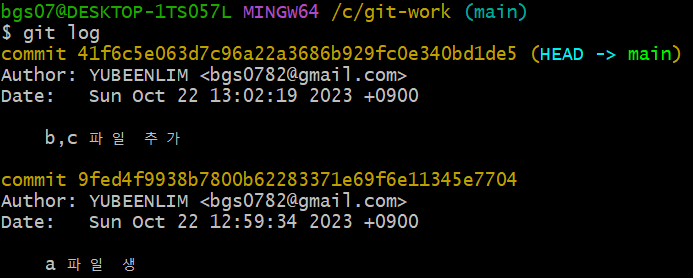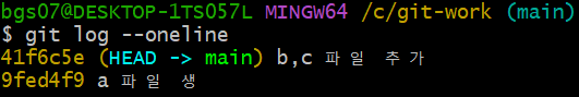 git log --oneline : 히스토리를 보기 쉽게 보여준다.