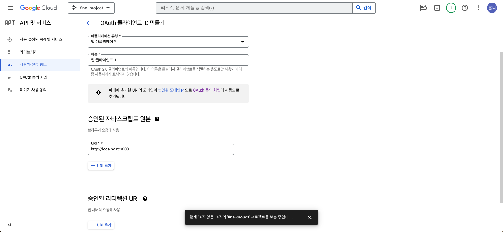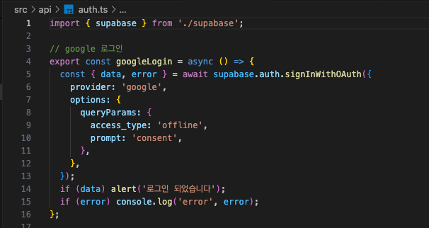 구글로그인은 따로 갱신을 해주지 않기 때문에 option을 추가하면 매번 새롭게 로그인할 수 있다.