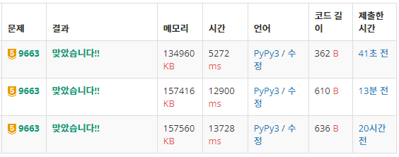 python으로 풀면 시간초과문제가 발생하기 때문에, C/C++로 푸는 것이 더 용이하다고 한다.(아래의 코드는 pypy로 제출하면 통과된다)