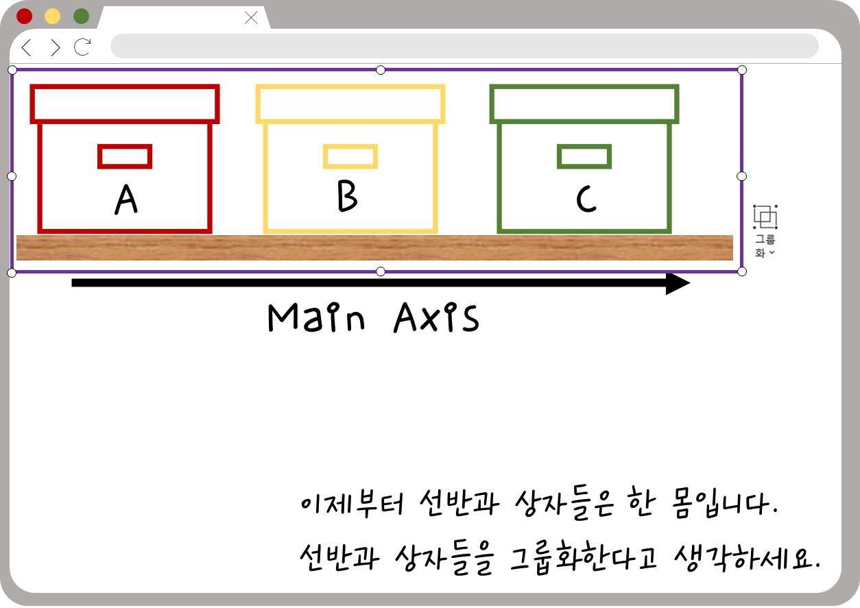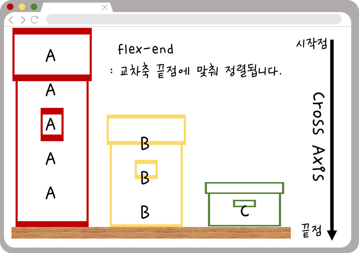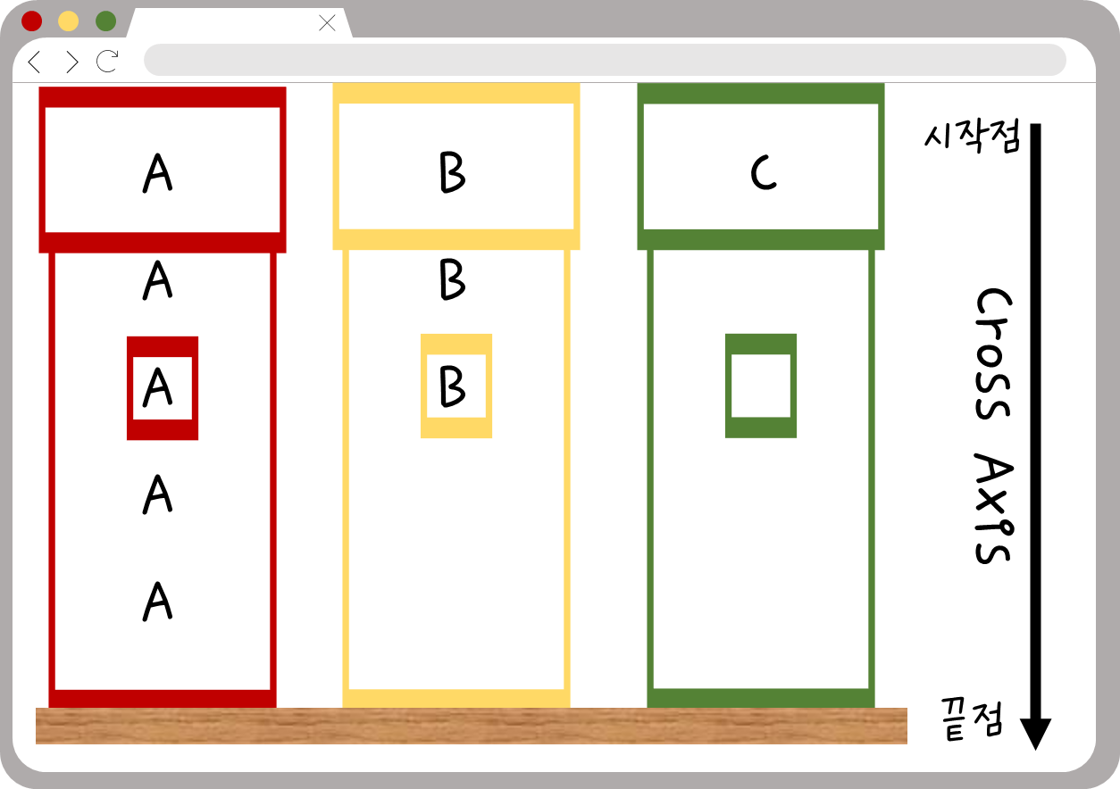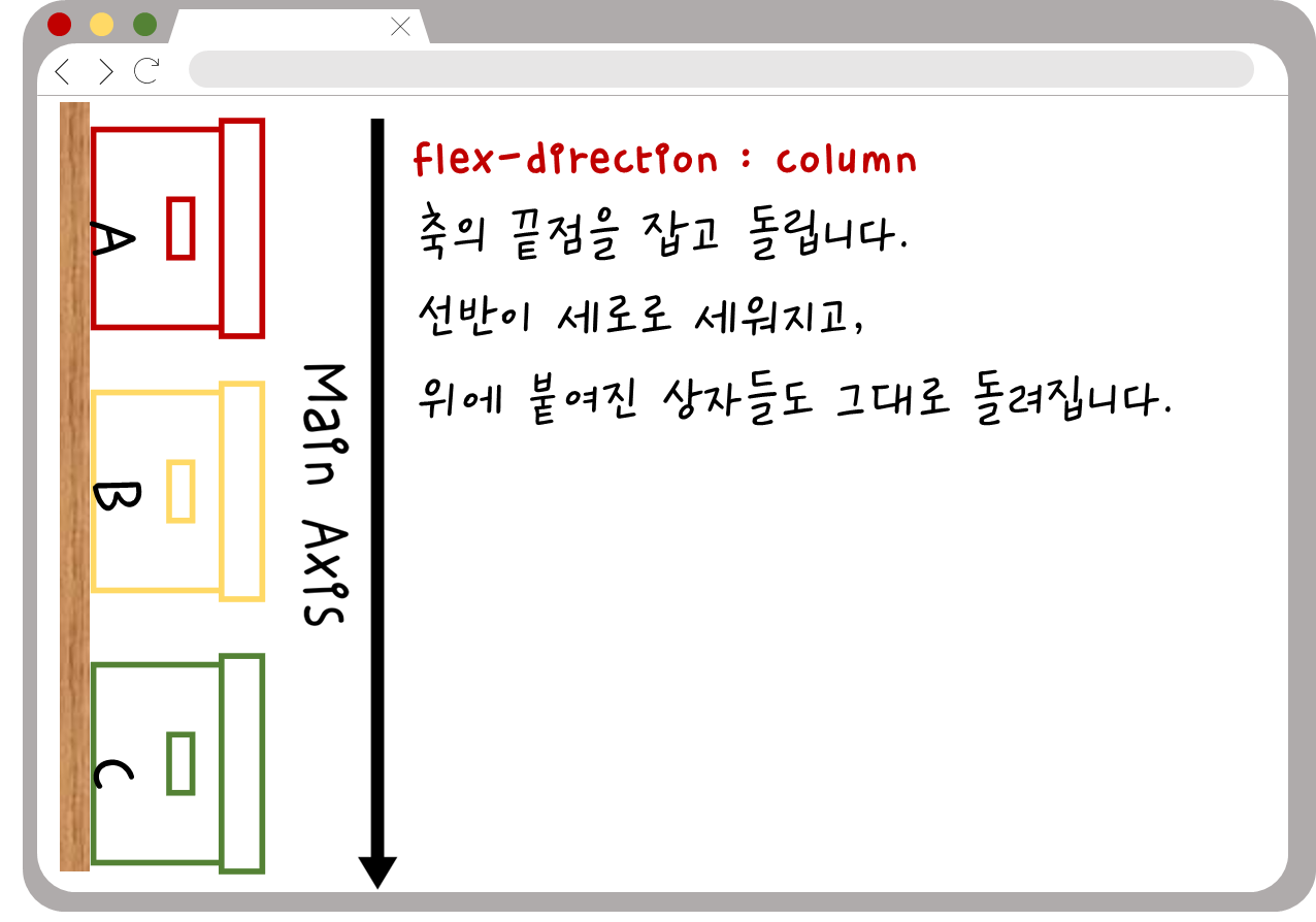 display: flex;μ μ€μ νλ©΄ κ° νλͺ© λ³ λ΄λΆ μμμ ν¬κΈ°λ‘ μ£ΌμΆμ λ°λΌ μ λ ¬λ©λλ€. λμ΄κ°μ΄ κ°μ₯ ν° νλͺ©μ λ§μΆμ΄ λλ¨Έμ§ λͺ¨λ νλͺ©λ€μ΄ λμ΄λ©λλ€.flexboxμλ μ£ΌμΆ(Main Axis)μ κ΅μ°¨μΆ(Cross Axis)κ° μμ΅λλ€. flexboxλ μ΄ λ μΆμ μ€μ νκ³ μμ§μ΄λ κ²μ΄λ―λ‘ μΆλΆν° μ΄ν΄νλ κ²μ΄ μ’μ΅λλ€.