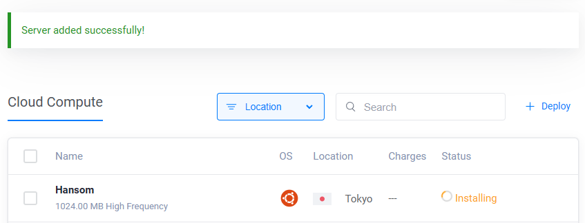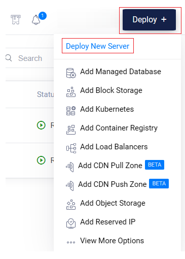 우측 상단의 Deploy + 클릭 후 드롭다운 메뉴에서 Deploy New Server 클릭