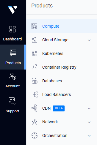 대시보드 좌측 탭에서 Product -> Compute 선택.