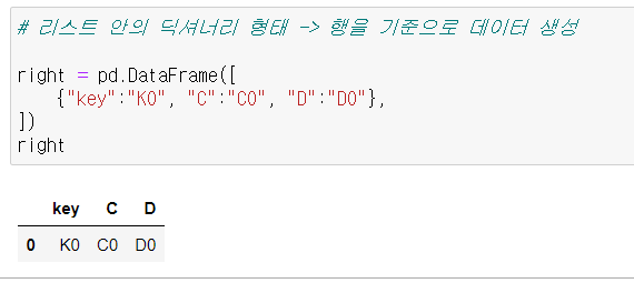 # 리스트 안의 딕셔너리 형태 -> 행을 기준으로 데이터 생성