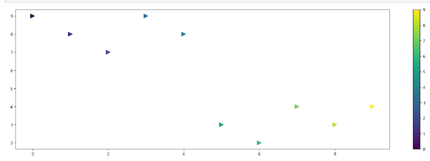 plt.scatter(t,y, s=100, c=colormap, marker=">")