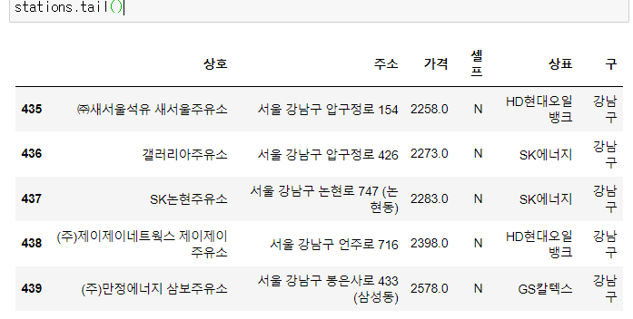 stations["구"] = [eachAddress.split()[1] for eachAddress in stations["주소"]]
