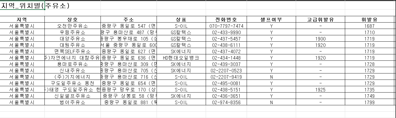 목표 : 서울시 주유소 중에서 셀프 주유소가 저렴할까? 확인해보자