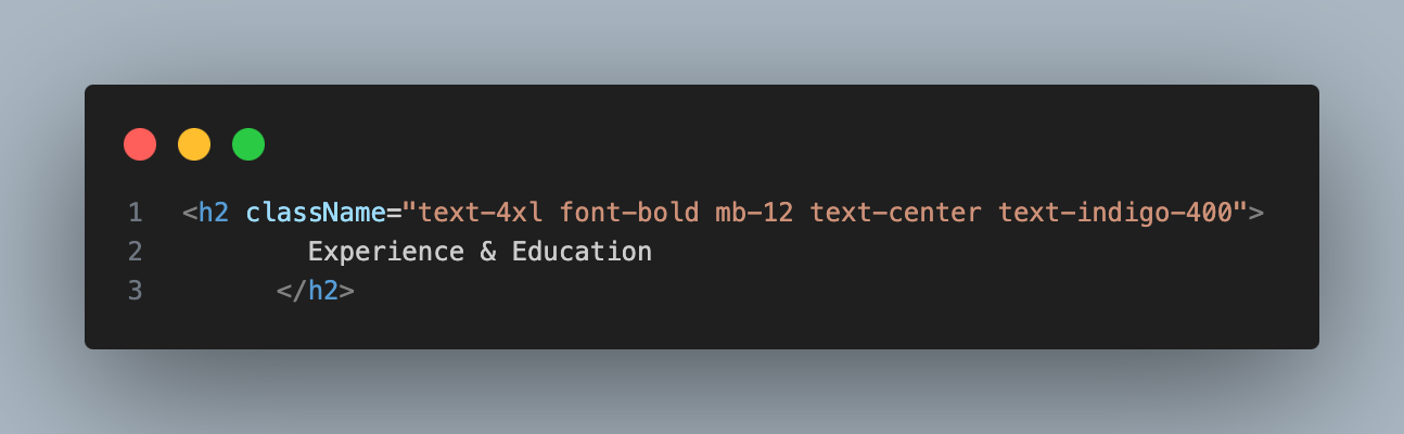 Experience & Education 섹션의 메인 제목에 스타일을 적용하는 코드이다.