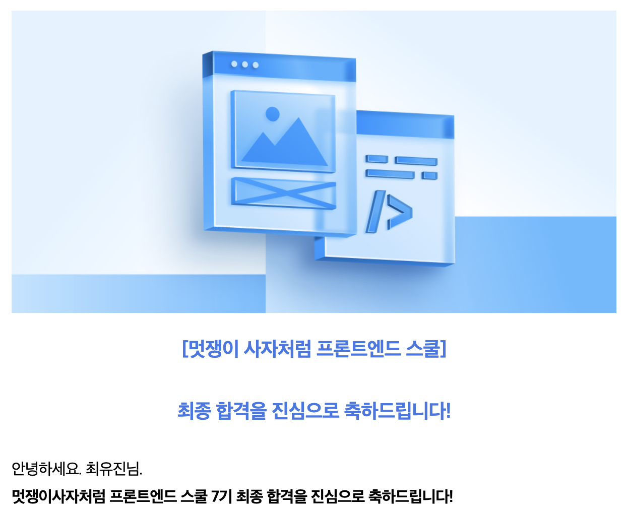 몸도 마음도 지쳤다는 핑계로(여기부턴 진짜 핑계임) 너무 오래 공부에 손을 놓고 있었고 나태가 관성이 되어가려던 찰나에 멋사 프론트엔드 스쿨 모집을 운명처럼 마주친 것이다.