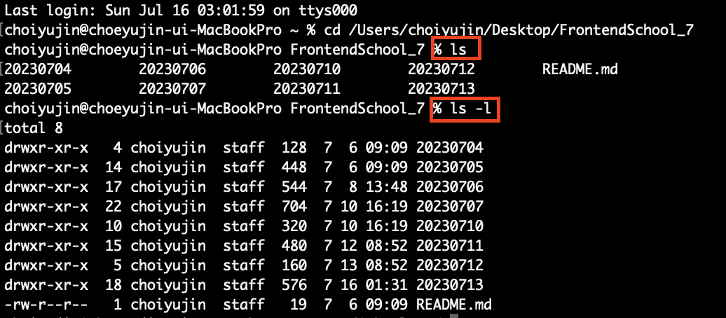 💡cd 를 입력한 후 이동하고싶은 폴더를 터미널창에 드래그하면 경로가 자동으로 입력된다.