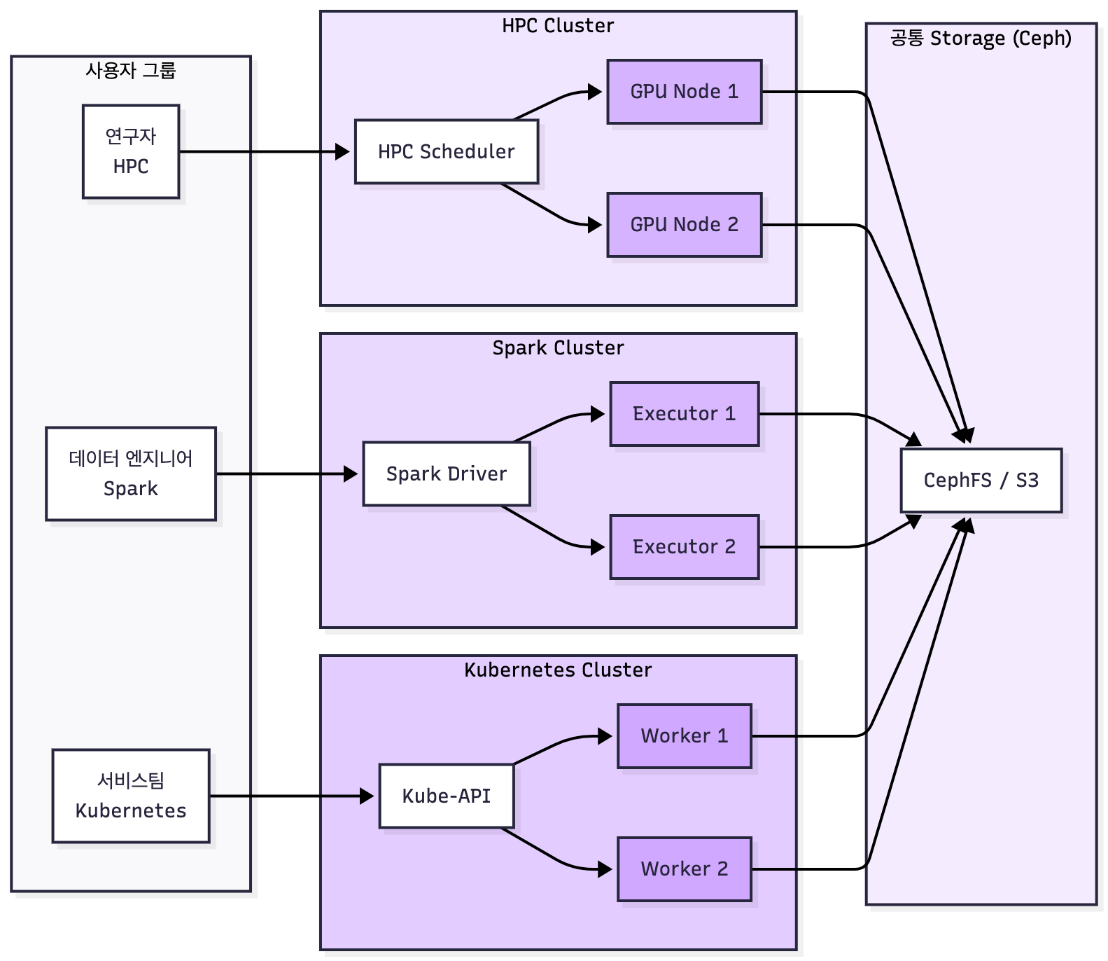 HPC/빅데이터/K8s 모두 Storage Layer만 바뀌고 구조는 동일하다.