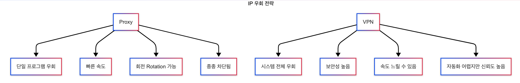 | Datacenter Proxy | 가장 저렴, 차단 위험 높음 |