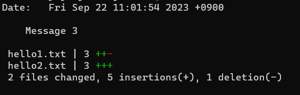 이라는 옵션을 입력하면 다음과 같이 파일들과 수정 사항들이 포함된 정보를 볼 수 있습니다.