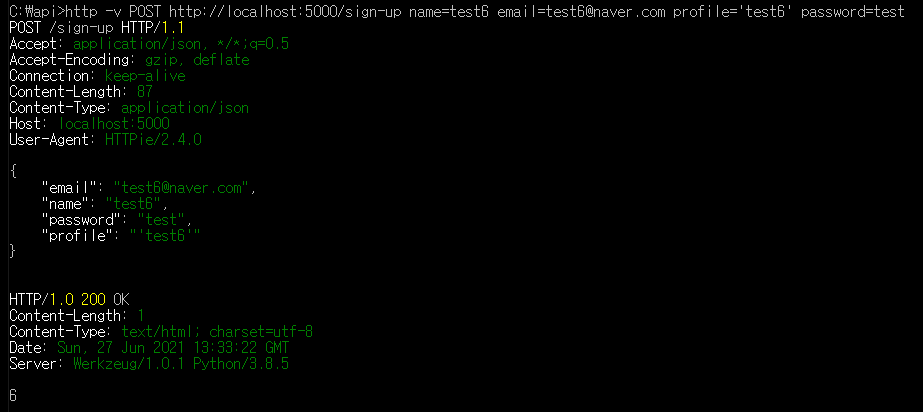 위 함수가하는 일은 간단하다. 아래에 구현하겠지만 요청에 담겨온 json을 읽고 insert_user에 던져준다.