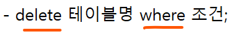 이 역시 어느 데이터를 삭제할 지 지정해줘야 하기 때문에 WHERE문이 붙습니다.