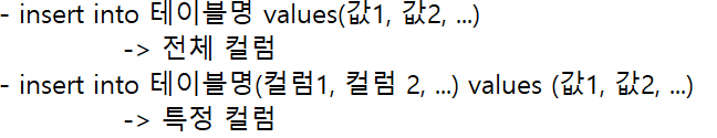 values(값 기입) / into : 데이터가 들어갈 테이블 명시