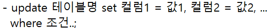 Update 명령어는 데이터를 수정해줍니다. 이에 대한 작성 방법은 아래와 같습니다.