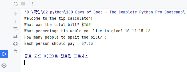 tip = int(input("What percentage tip would you like to give? 10 12 15 "))