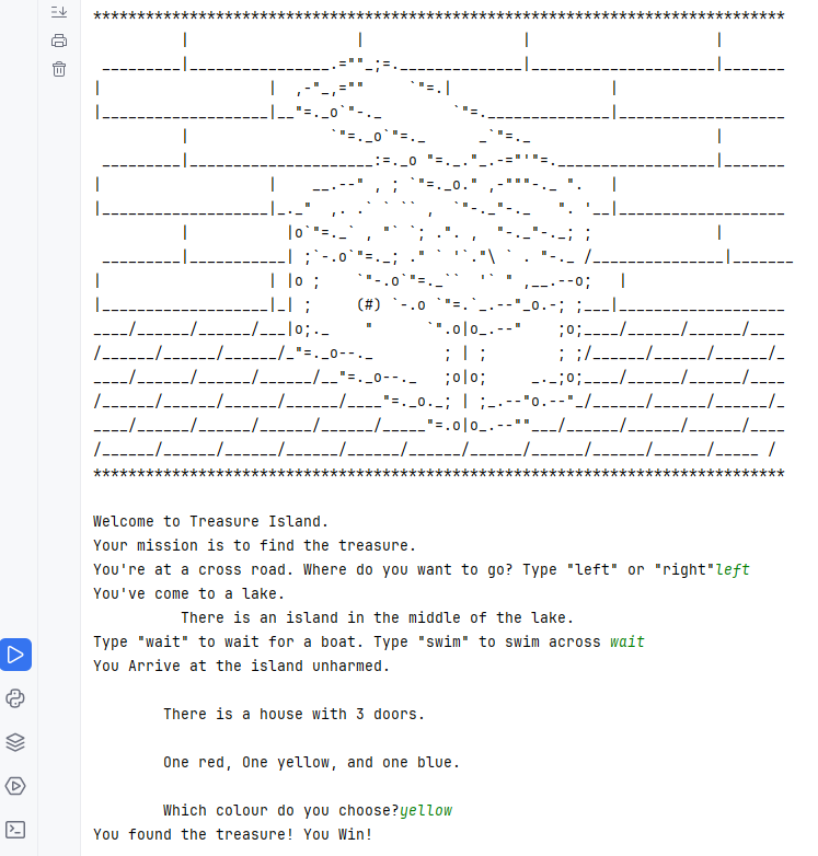 print("You found the treasure! You Win!")