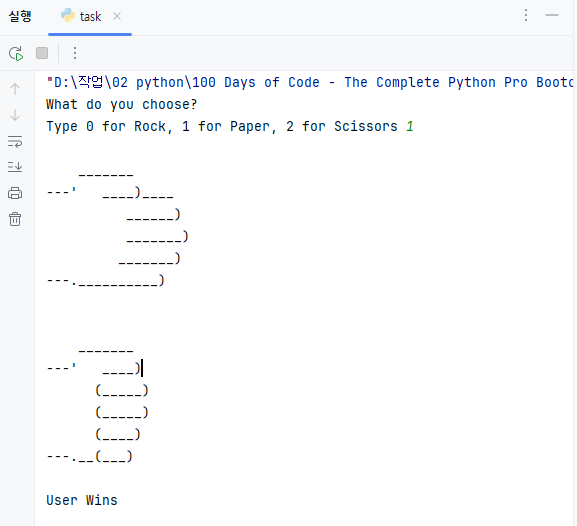 Type 0 for Rock, 1 for Paper, 2 for Scissors """))