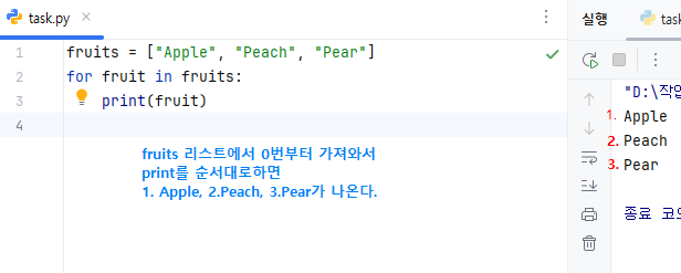 list 안에 있는 item들을 하나씩 꺼내서 list의 끝 item까지 반복으로 실행하는 것