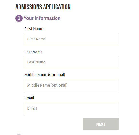 해당 페이지 상단에 Apply Now를 선택하면 바로 Admissions application 작성 페이지로 간다.