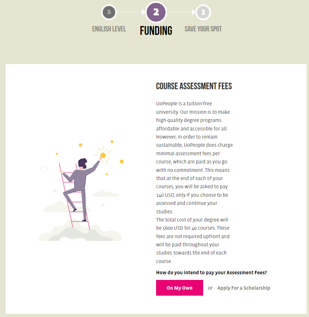 Apply For a Scholarship을 선택하면 그렇다면 내가 수강료를 얼마나 낼 수 있는지, 왜 장학금을 받아야하는 지를 작성하라고 한다.