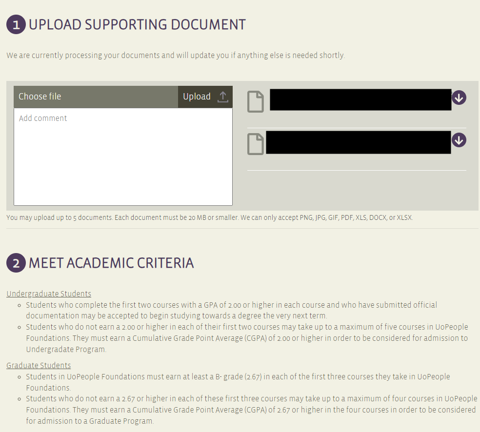 이 학교 또한 대학인지라 지원자는 고등학교 졸업자 이상이라는 기본 자격이 있기 때문에 고등학교 혹은 그 이상의 졸업증을 업로드 하라고 한다.