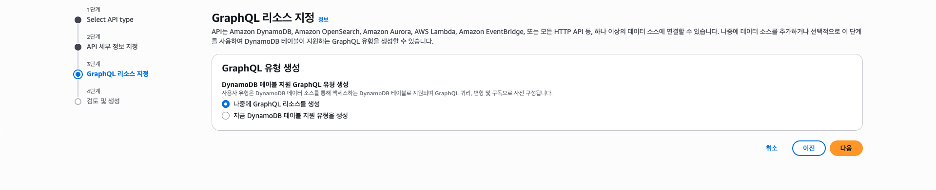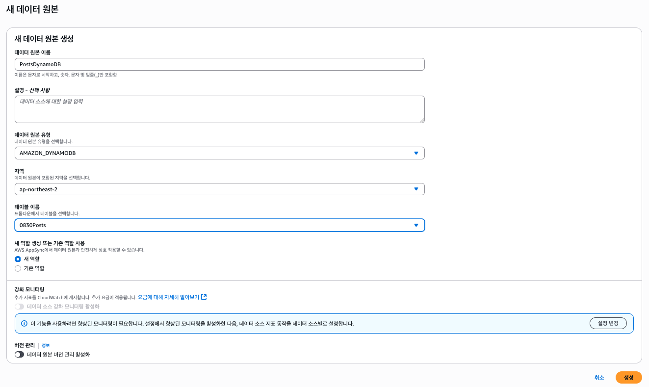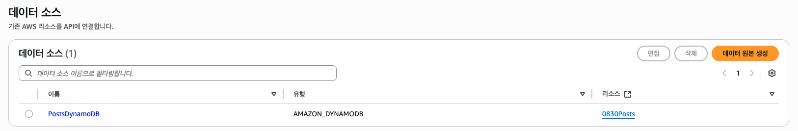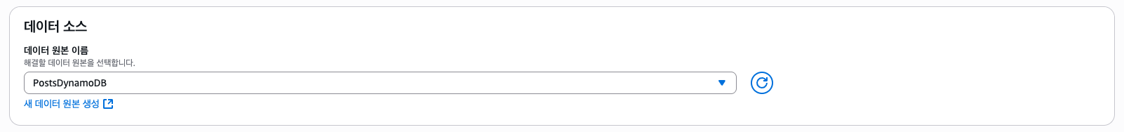 데이터 소스는 생성해둔 DynamoDB 테이블을 선택한다.