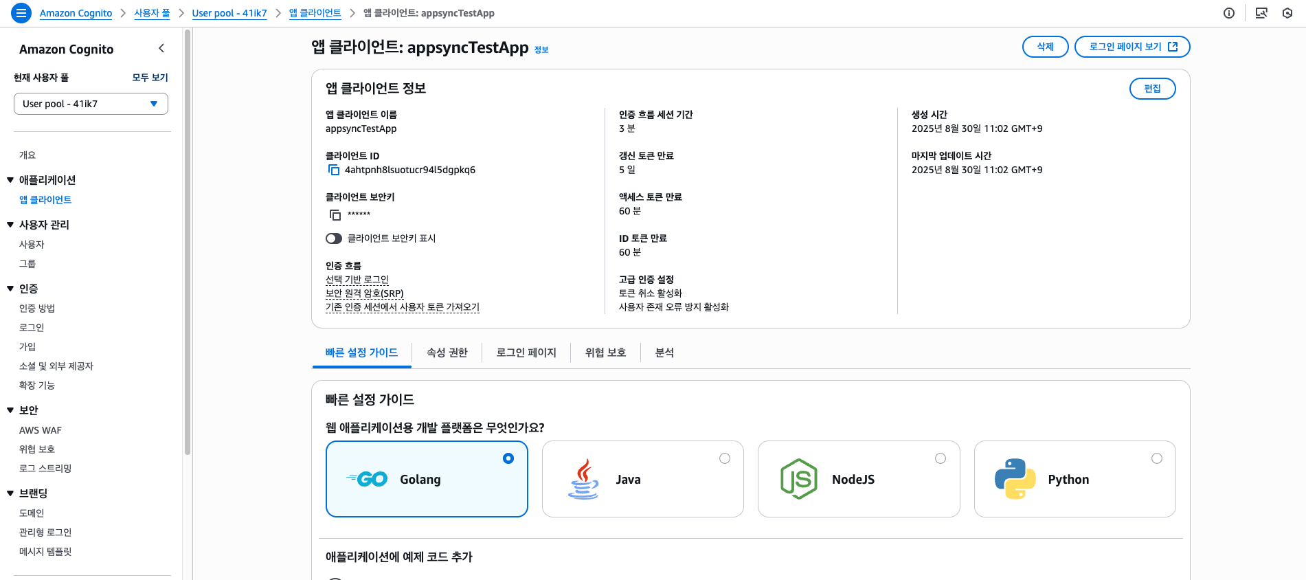먼저 Cognito 애플리케이션을 생성해보자.