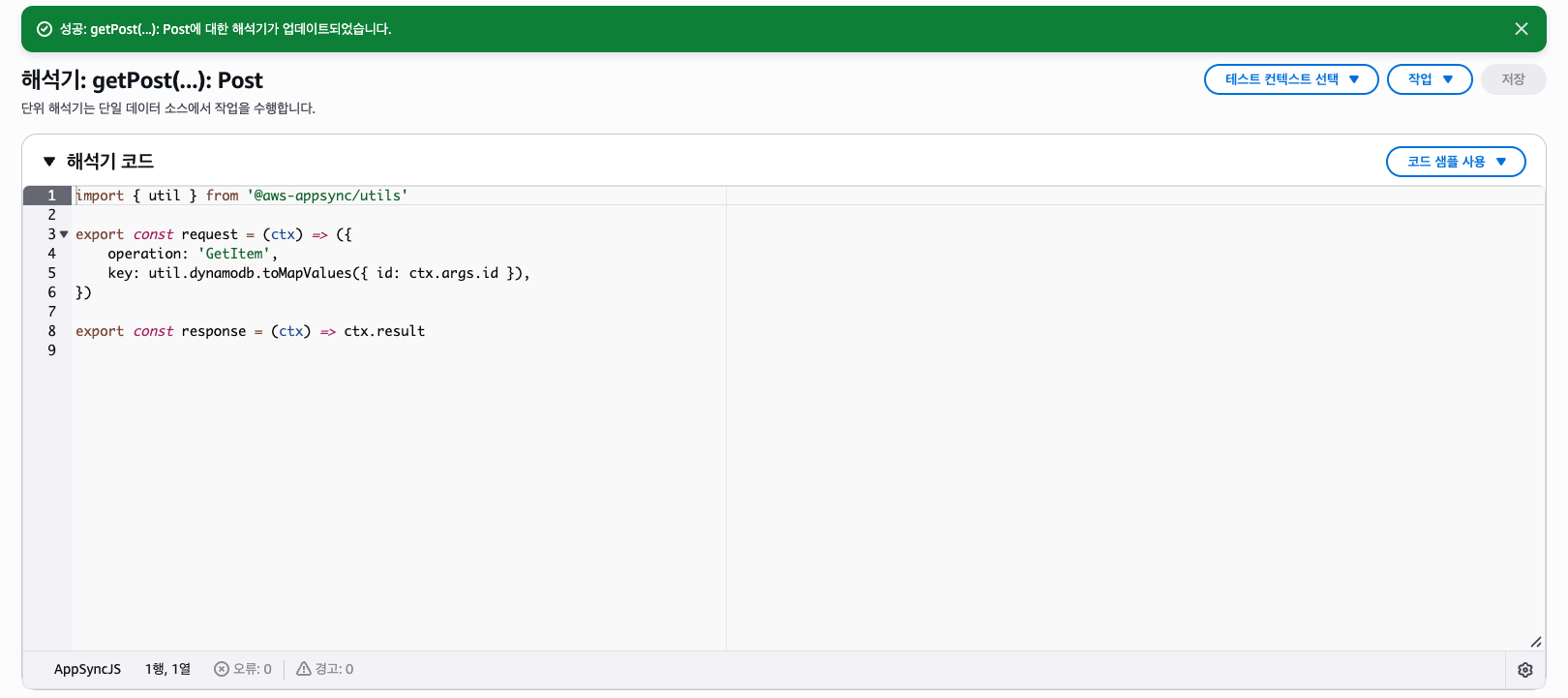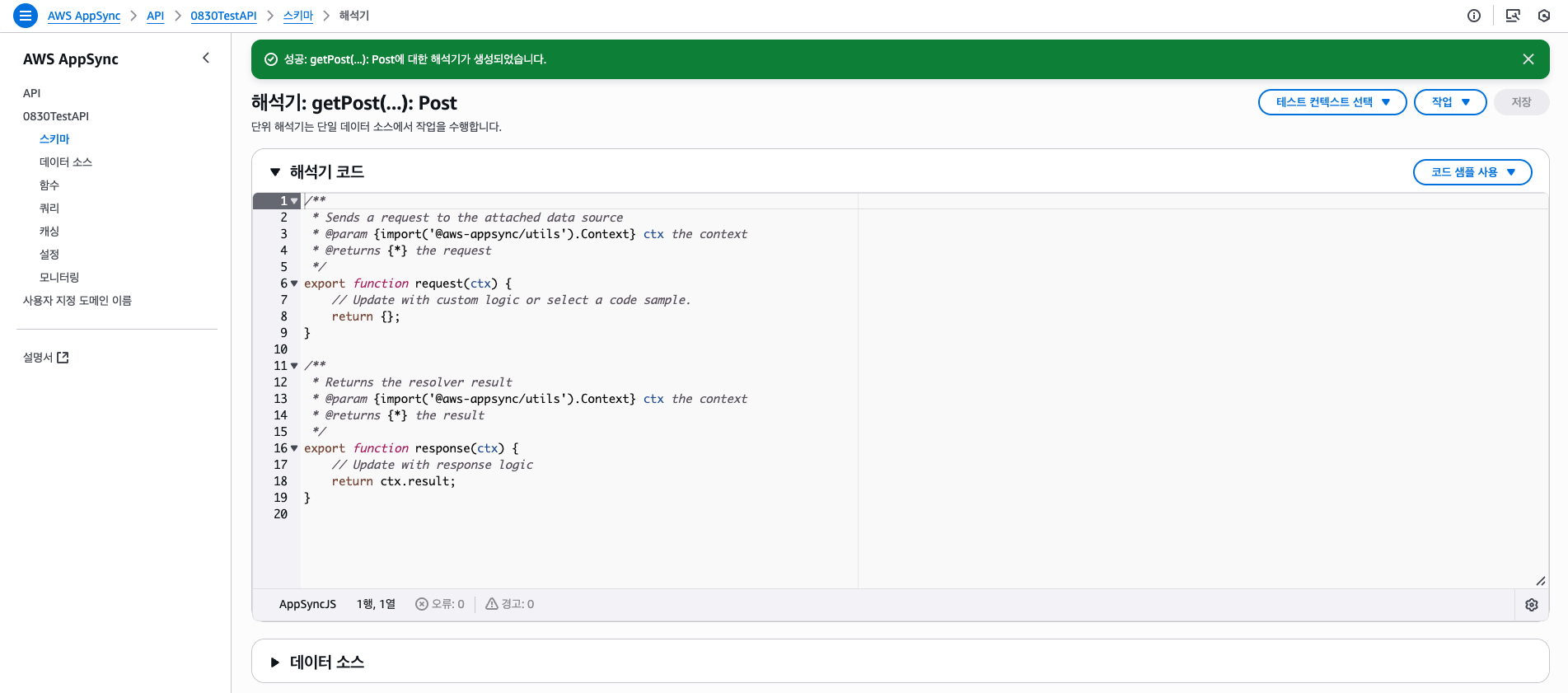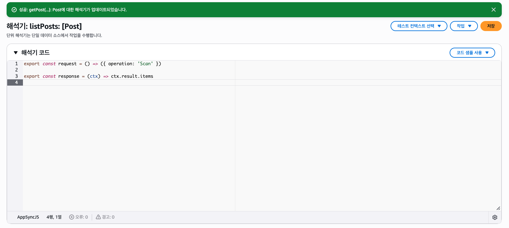 그리고 Resolver 런타임은 JavaScript로 선택한다.
