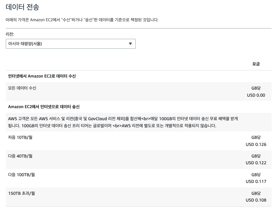 자세한 요금은 아래의 공식 문서를 참고하길 바란다.