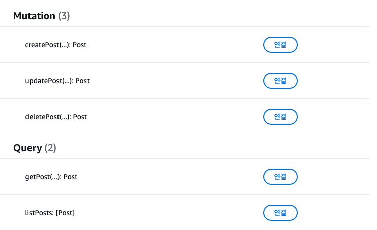 그럼 뮤테이션과 쿼리가 보이는데, 여기서 Resolver를 작성할 수 있다. getPost() 쿼리를 첫번째로 연결해보자. 연결 버튼을 클릭한다.