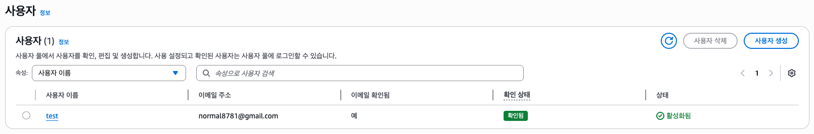 Cognito 유저 풀을 선택해주자.