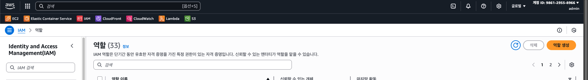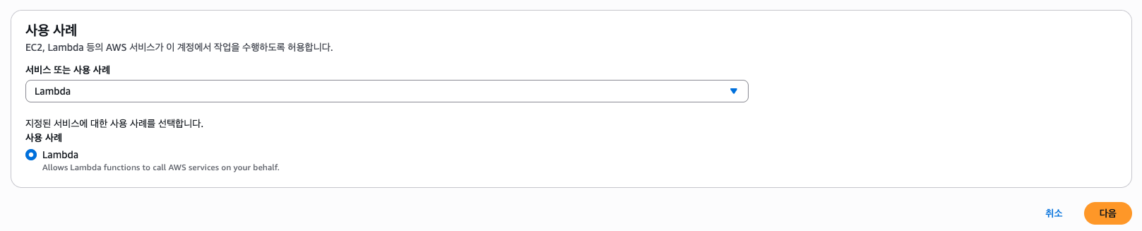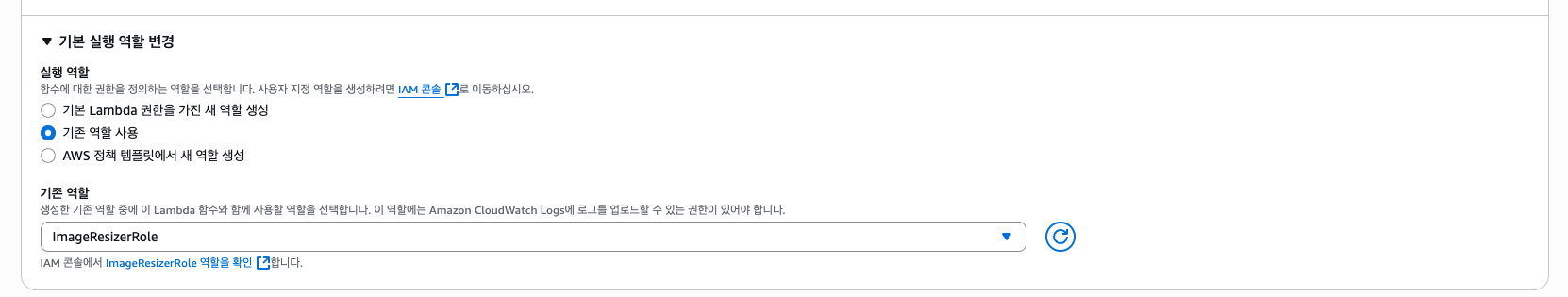 실행 역할은 아까 생성해두었던 IAM 역할을 선택한다.