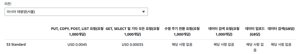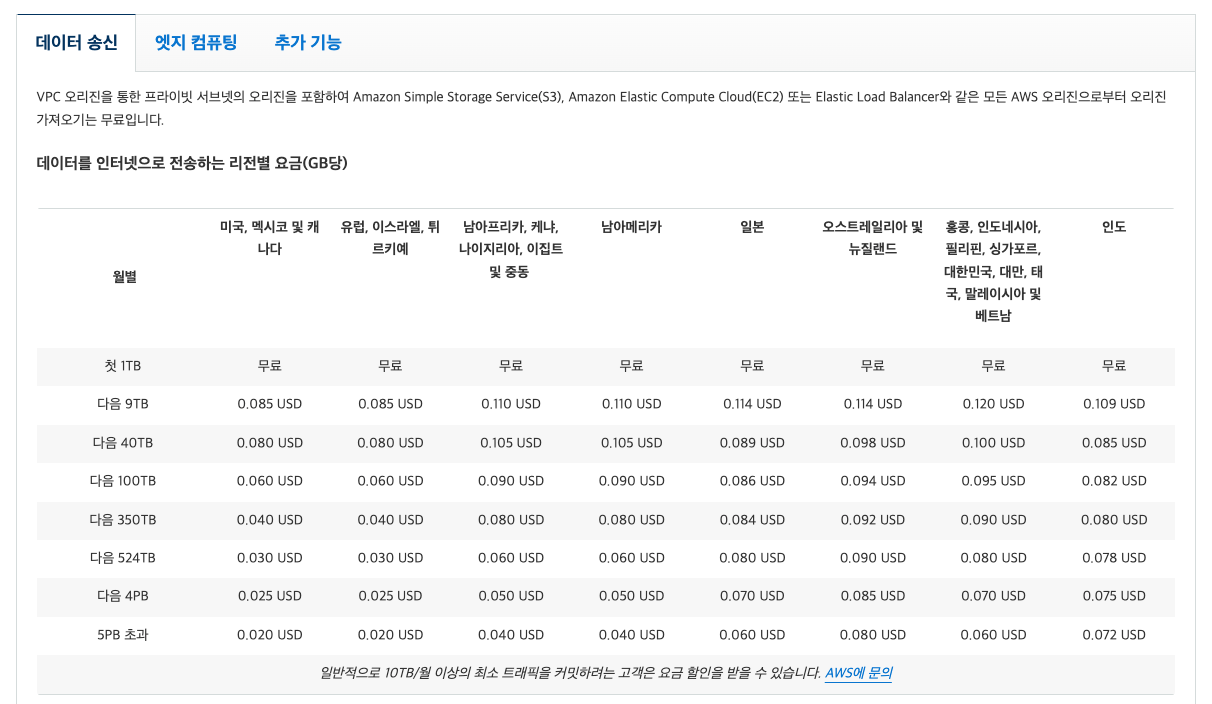 첫 1TB는 까지는 무료인데, 예시로 계산하기 위해 의 대한민국 요금을 기준으로 하겠다. 요금은 1GB 당 0.120$가 부과된다.