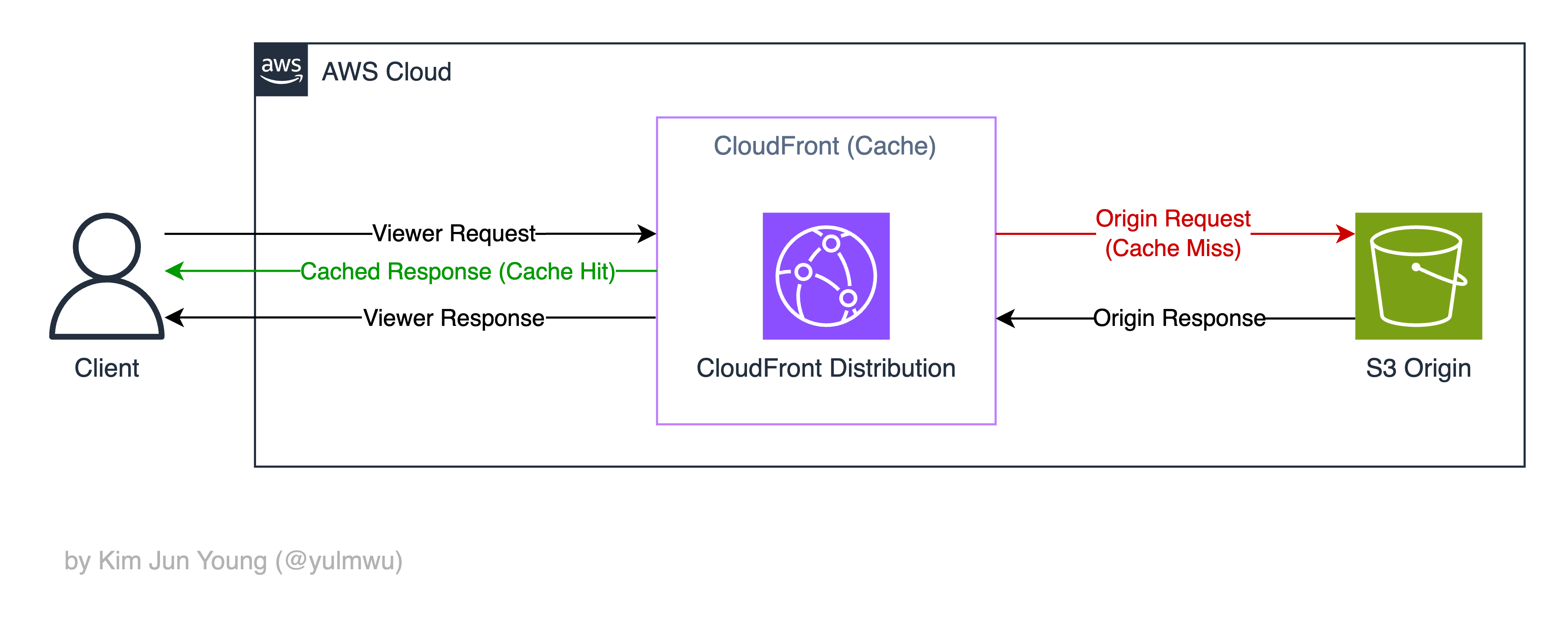 오리진 서버의 응답(Origin Response)은 CloudFront로 돌아가 캐싱되고, 클라이언트에 최종적으로 응답한다. (Viewer Response)